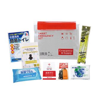 防水仕様のポーチに入ったコンパクトで普段から携帯しやすい防災セット。※IPX4相当